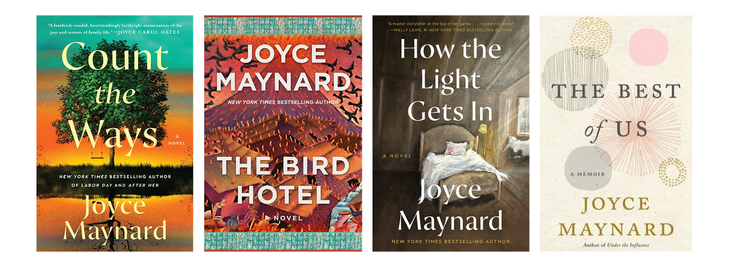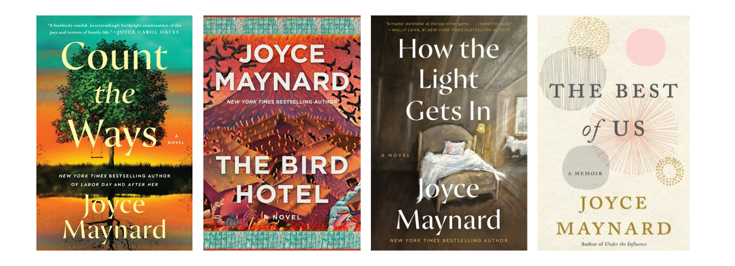 I’m Joyce Maynard, a New York Times bestselling author. I published my first book in 1973, when I was 19 years old, and I’ve written 19 more books since then—both fiction and nonfiction—including To Die For and Labor Day, both adapted into films.